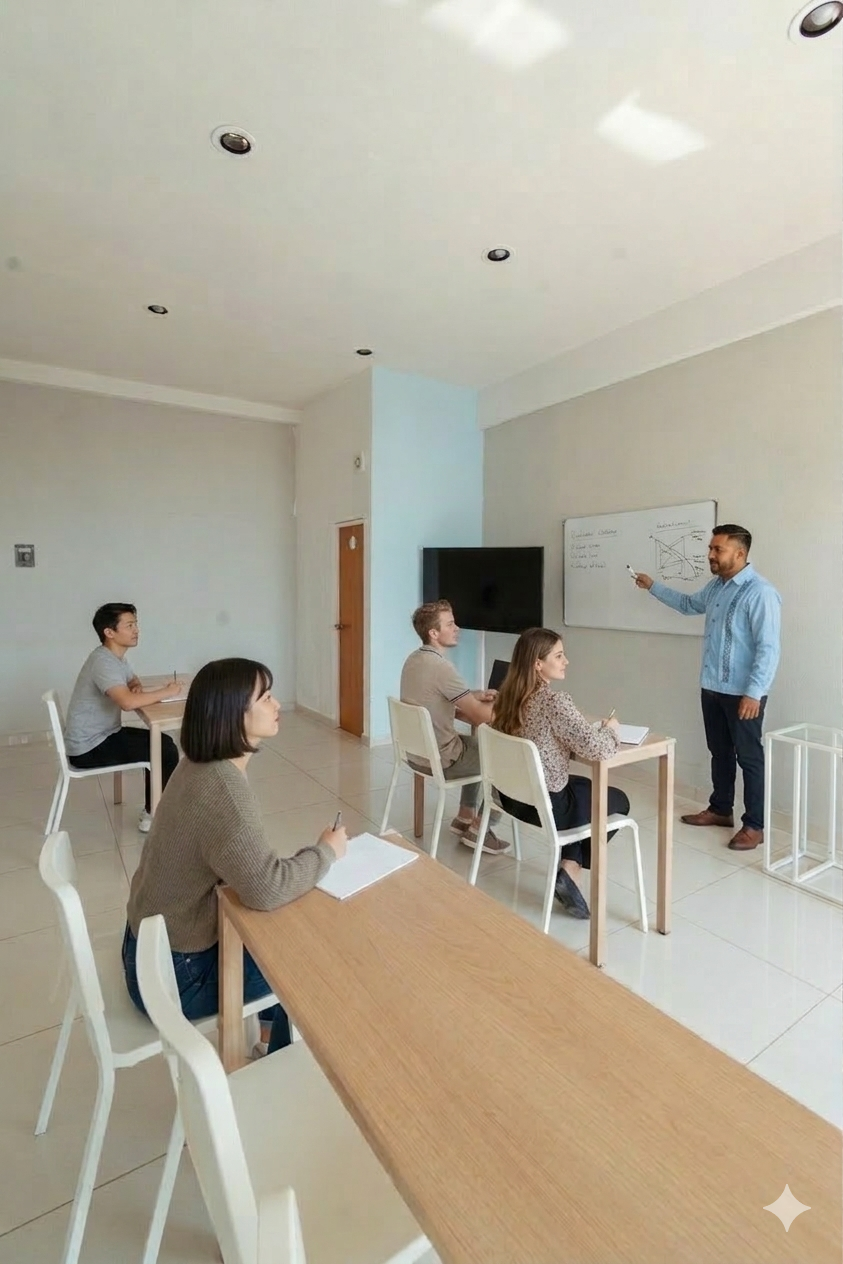 Our English program includes a total of 48 hours of instruction, with 3-hour classes from Monday to Thursday and a 2-hour real-life practice session every Friday, creating a balanced structure between learning and application. During in-class sessions, students develop all core skills, including speaking, listening, reading, and writing, while practicing essential grammar and vocabulary through interactive, communicative activities with a strong focus on pronunciation and fluency. Classes are conducted in a relaxed, immersive environment, with small groups and no mixing of ages or levels, ensuring personalized attention and a stress-free learning experience. Every Friday, students participate in a 2-hour city outing with a Mexican language partner, where they engage in real conversations and explore everyday situations while using English naturally, helping build confidence and reduce fear of speaking. Additionally, the program includes two group cultural trips to Cholula and Atlixco, allowing students to practice the language in authentic social and cultural contexts. This comprehensive approach ensures that students not only study English, but actively use it, gaining the confidence and ability to communicate effectively in real-life situations. Whit a MXN$1000 pesos you can reserve my spot.